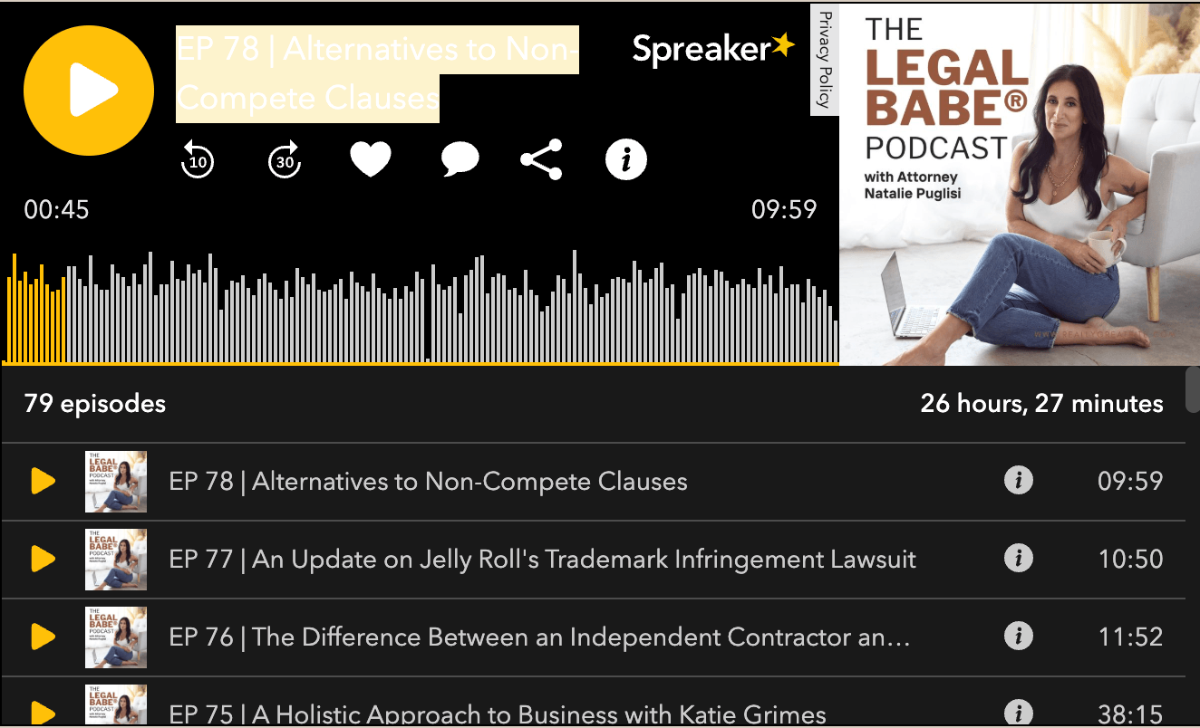 Natalie Puglisi is an attorney and legal resource for online entrepreneurs. She has dedicated over a decade of experience to helping entrepreneurs get their business legally protected.
